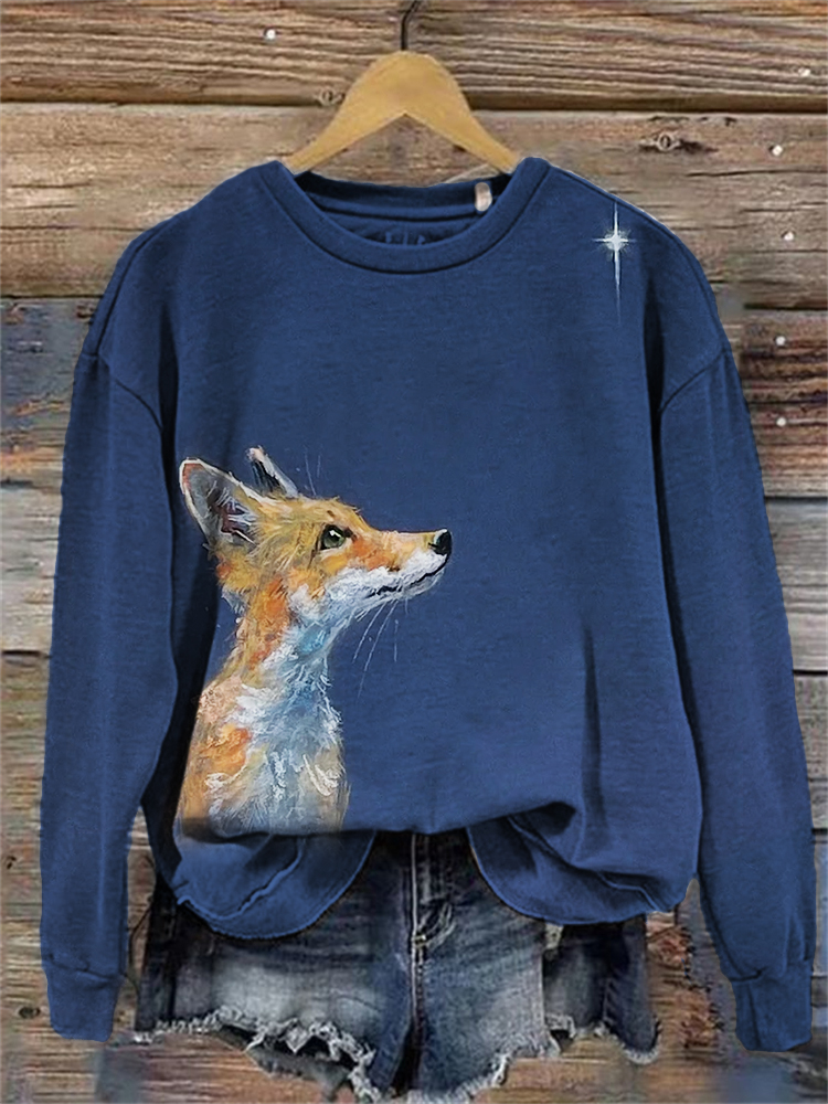 Women's Winter Forest Fox Art Casual Sweater Hoodie